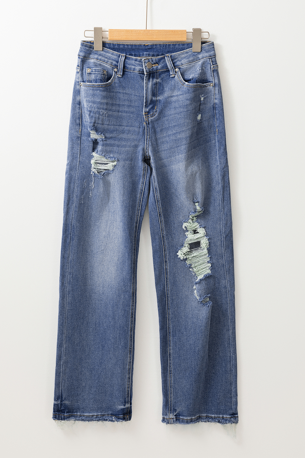 - The raw hem design adds a stylish touch to these jeans
