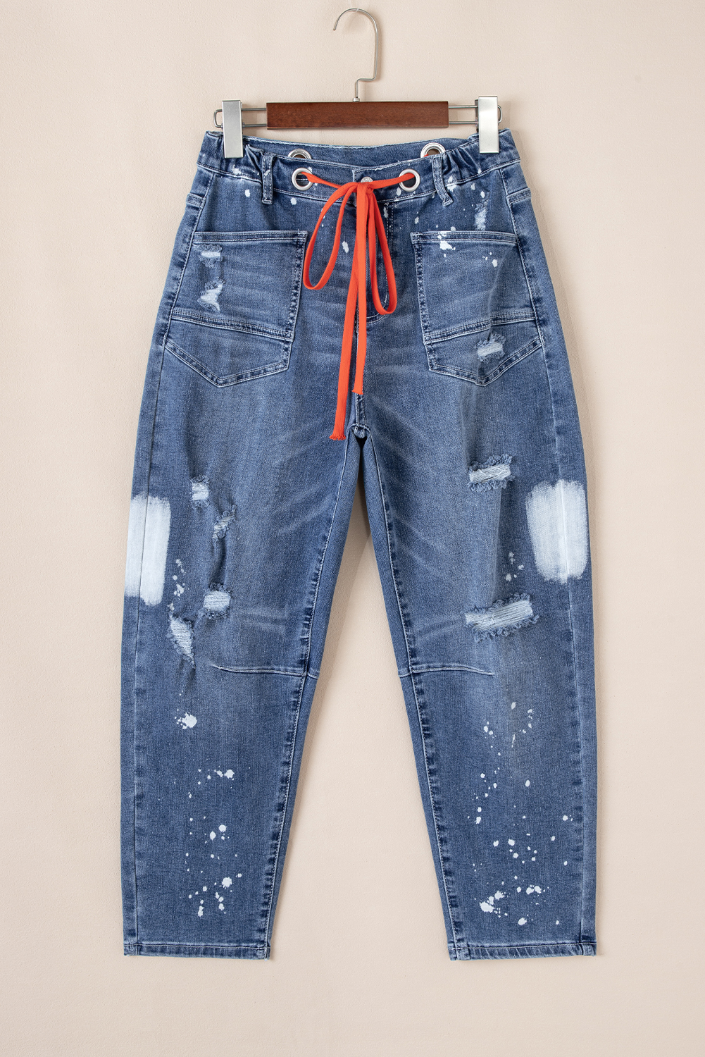 Ashleigh Blue Ripped Splattering Paint Rope Waist Cropped Straight Jeans