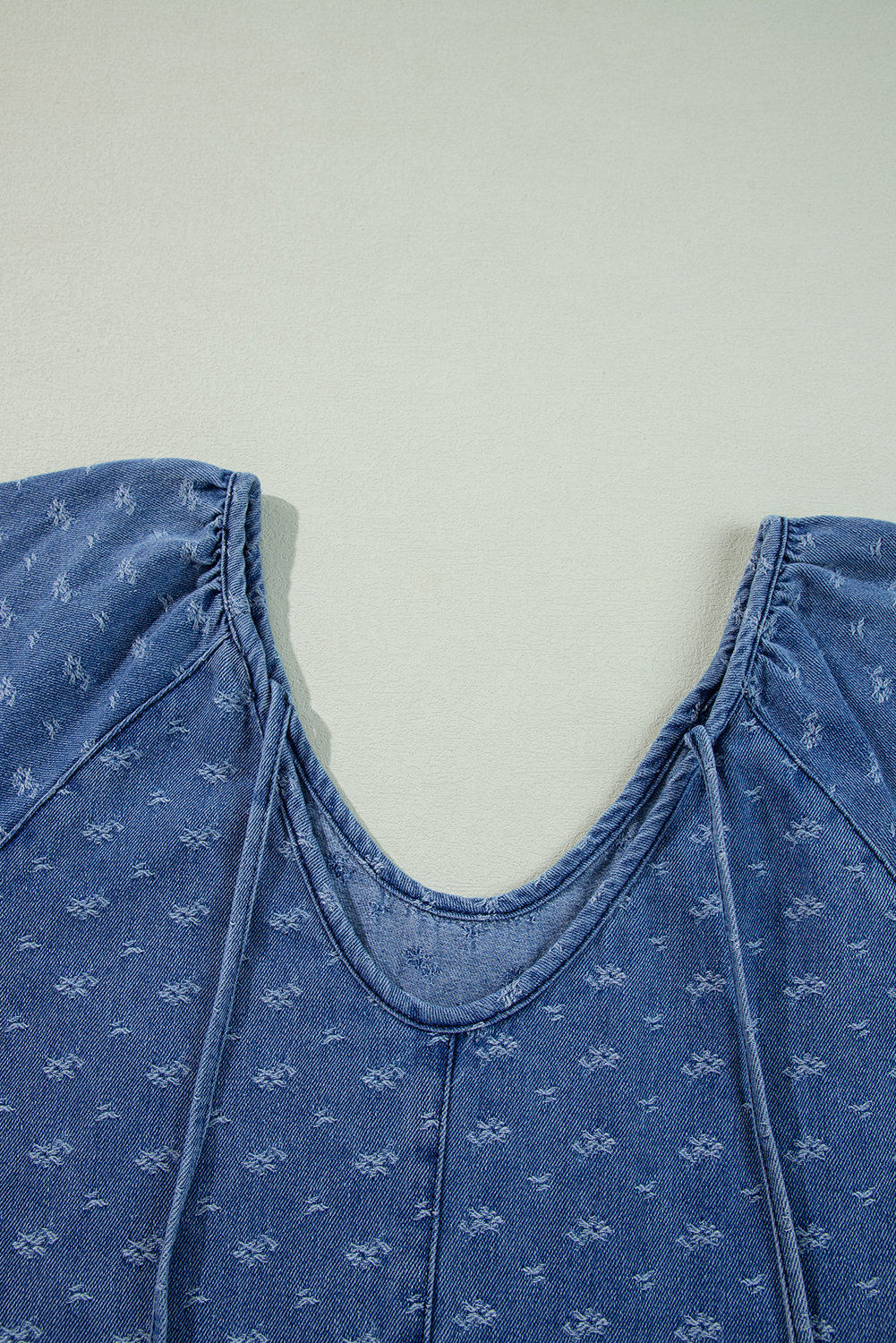 Three quarter sleeves, babydoll style, adjustable tie back.