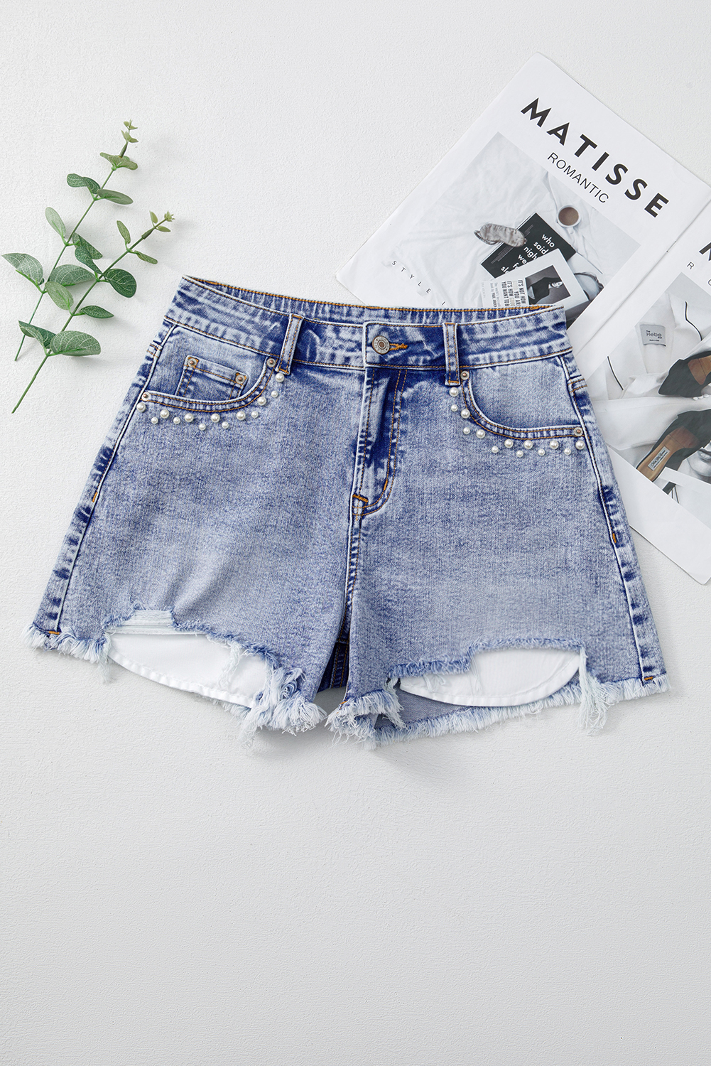 - The distressed shorts offer a cool and laid-back look.