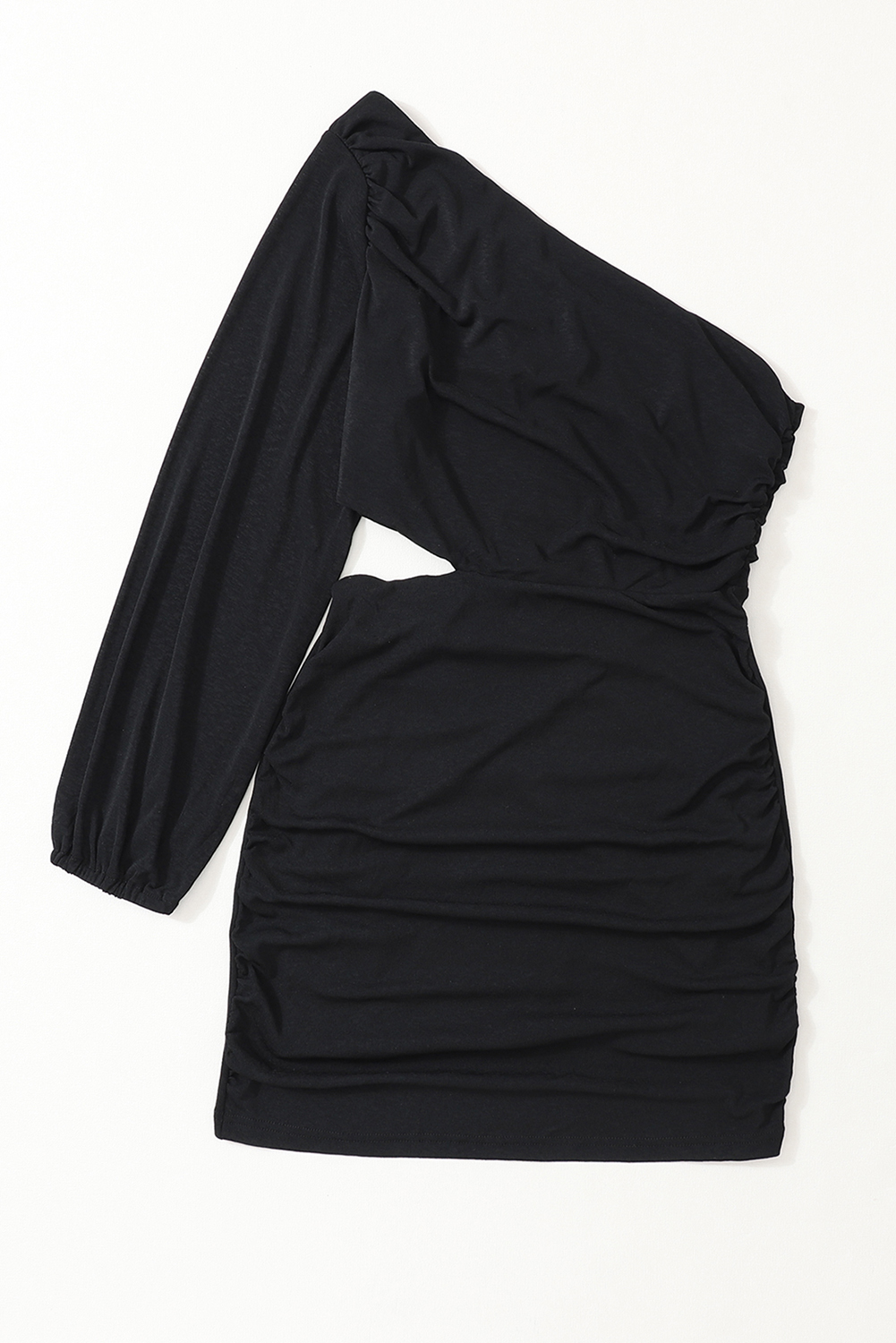 - Asymmetric design including single off-shoulder, and cut out-design at waist