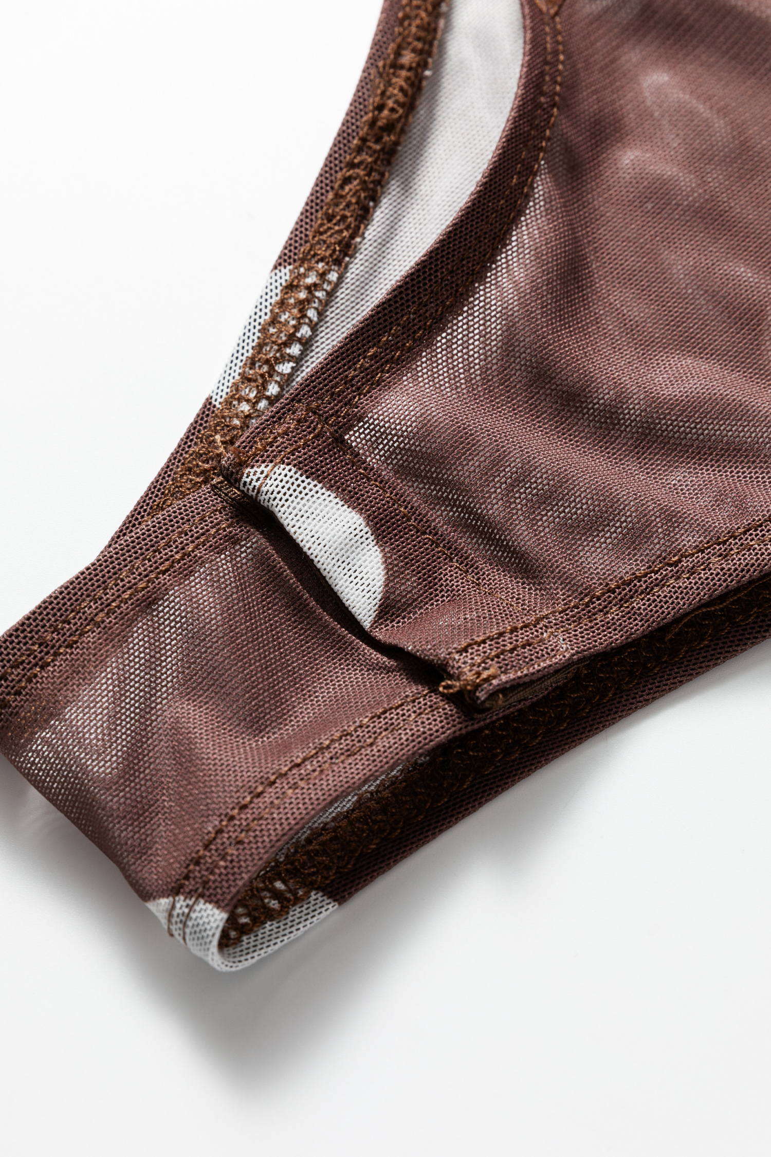 Sheer mesh bodysuit design offers a sleek, fashion-forward layered look.