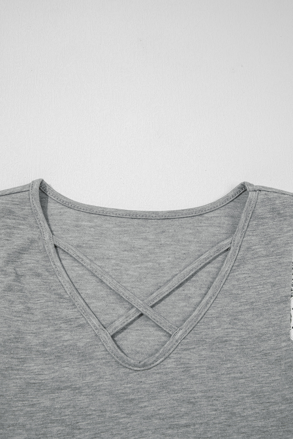 - The crisscross front adds a sophisticated vibe to this gray sleeveless top.