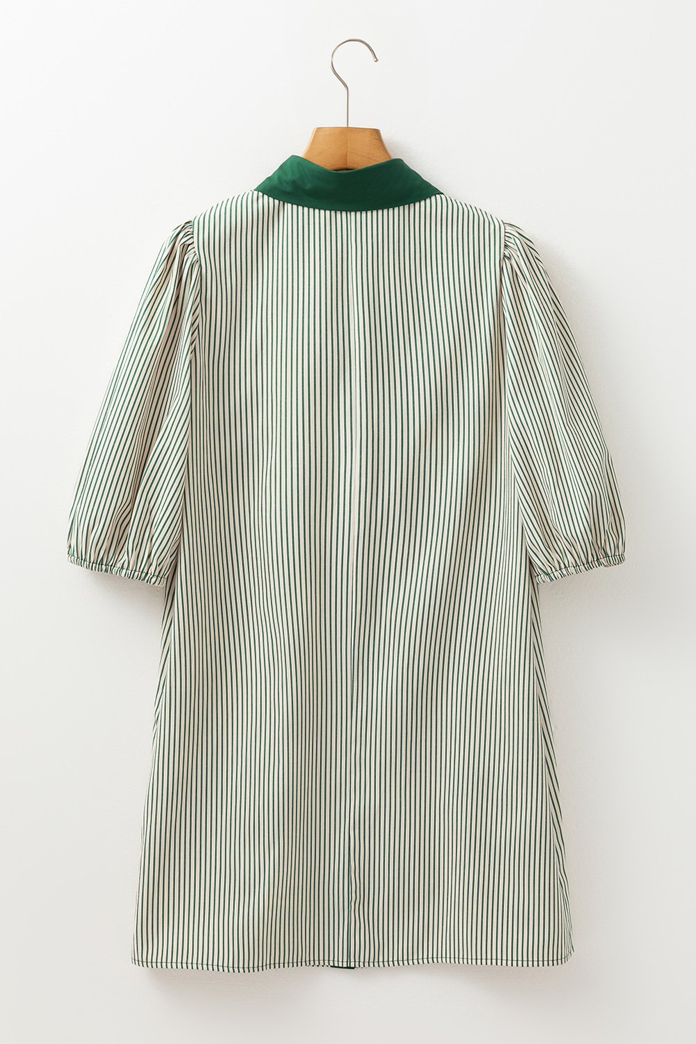 - It features a striped silhouette,collared neckline, ¾ length sleeves with elastic cuffs