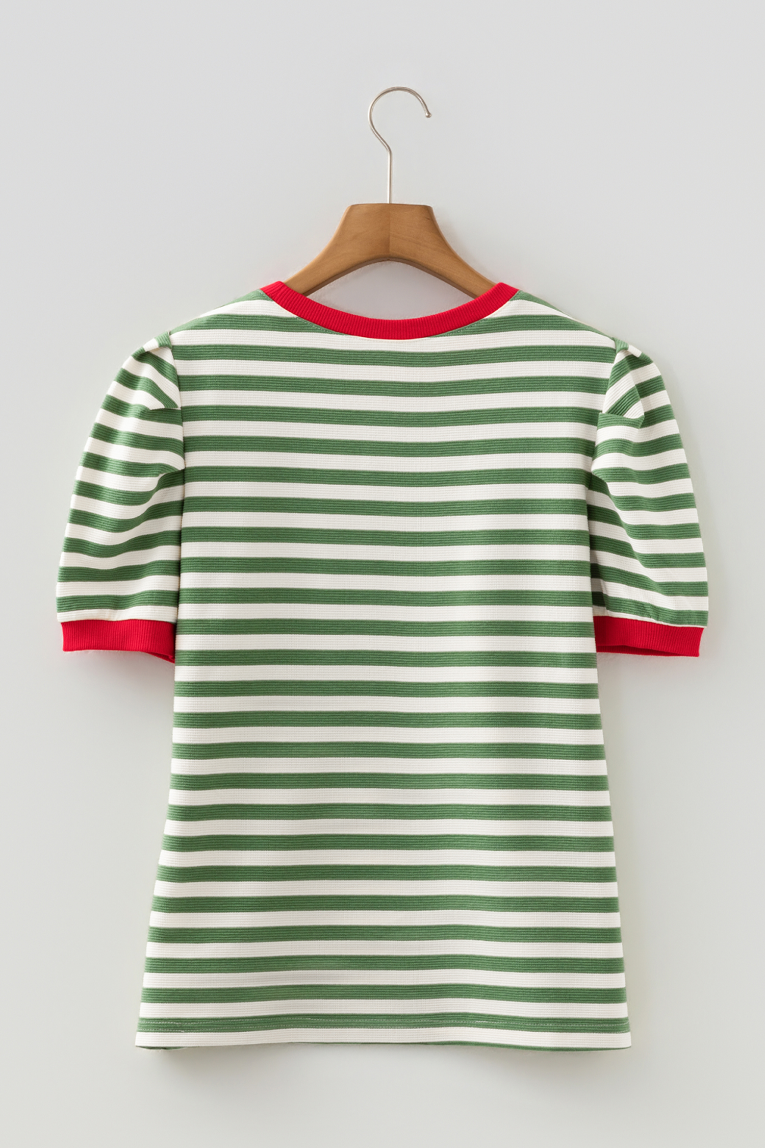 - Classic striped tee with puff sleeves and contrast trim for a playful vibe.
