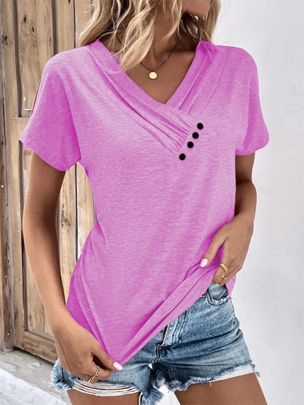 The new casual vacation comfortable loose collar short-sleeved T-shirt sweater button-up top is suitable for many occasions, and the simple design makes the boring season colorful and interesting. A variety of collocation options make you confident and beautiful. It fits snugly without restricting your movement.