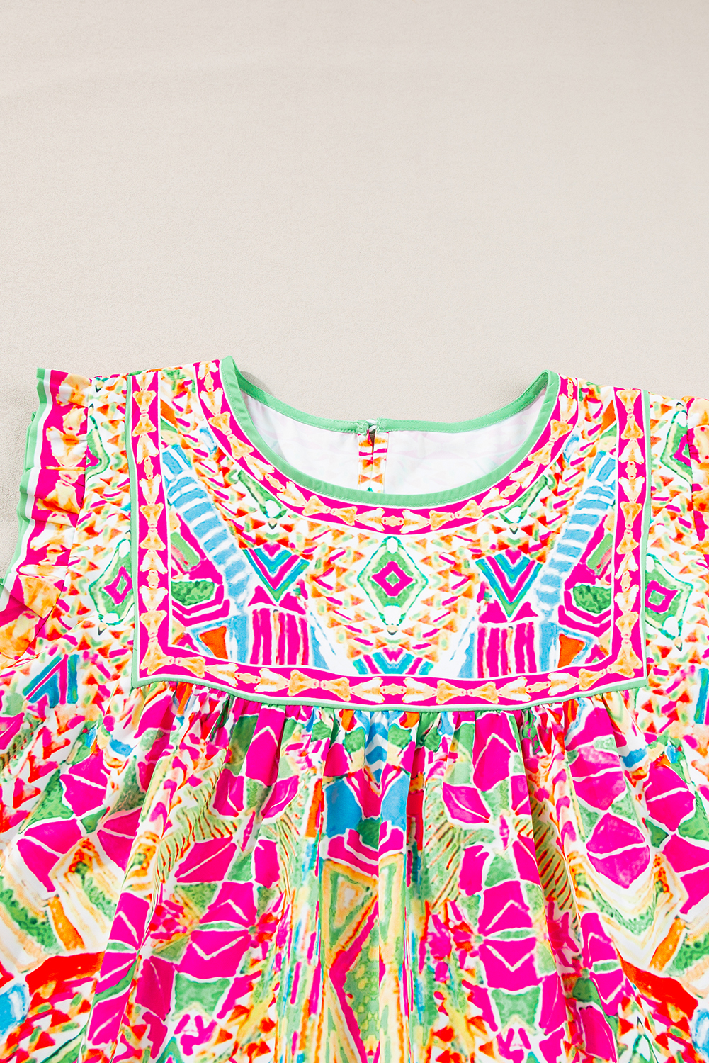 Be the first to review “Orange Geometric Print Ruffled Trim Tank Top”