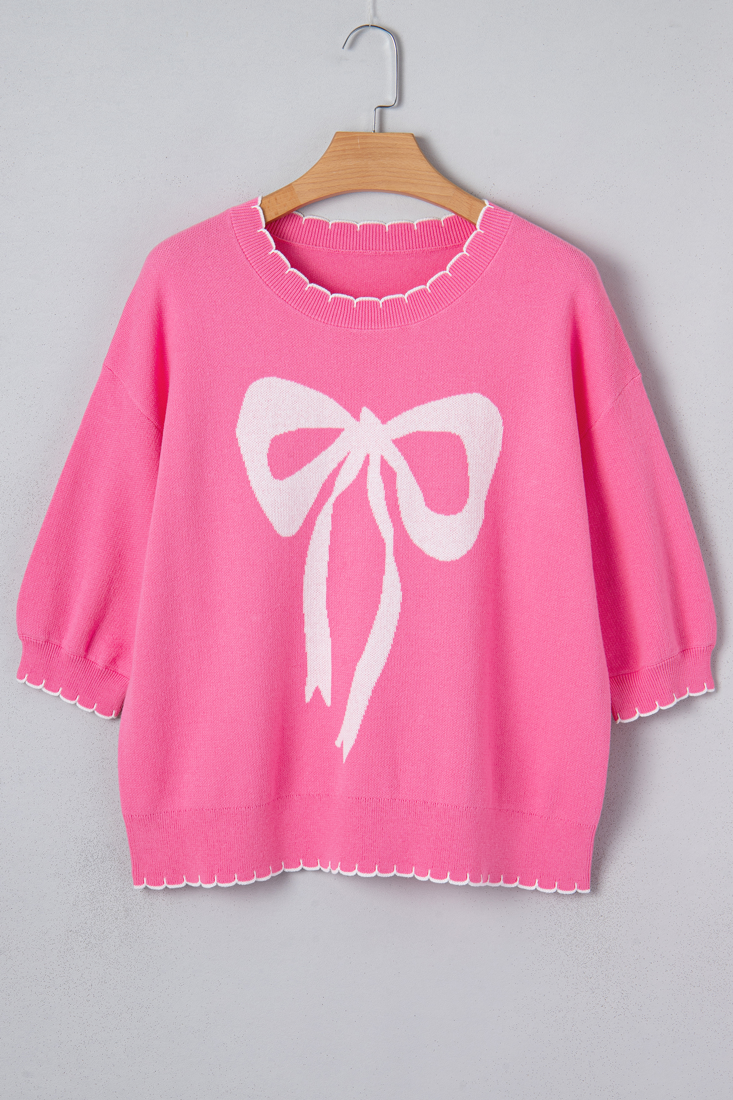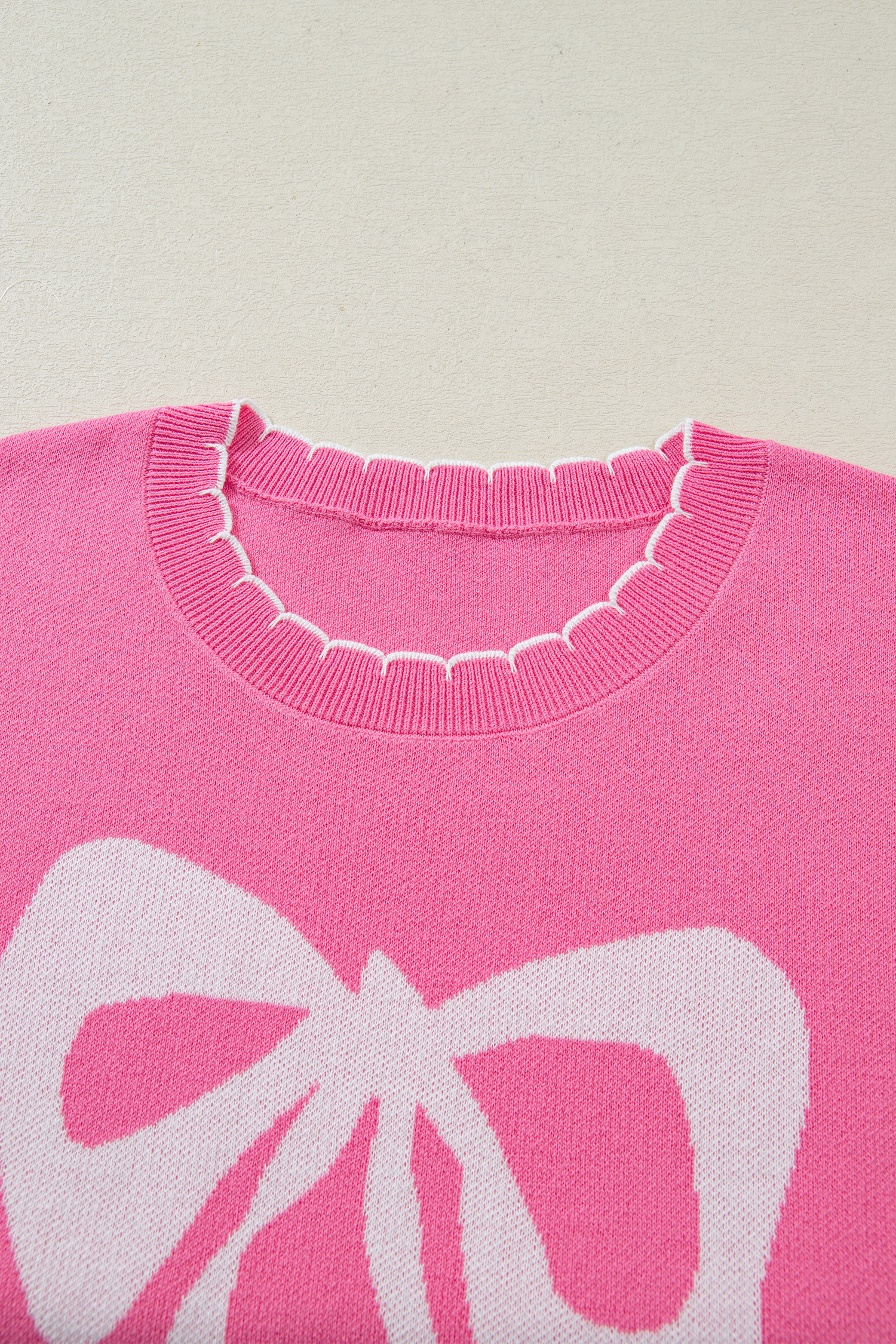 - Big ribbon bow print adds playful charm to this women’s drop shoulder sweater.