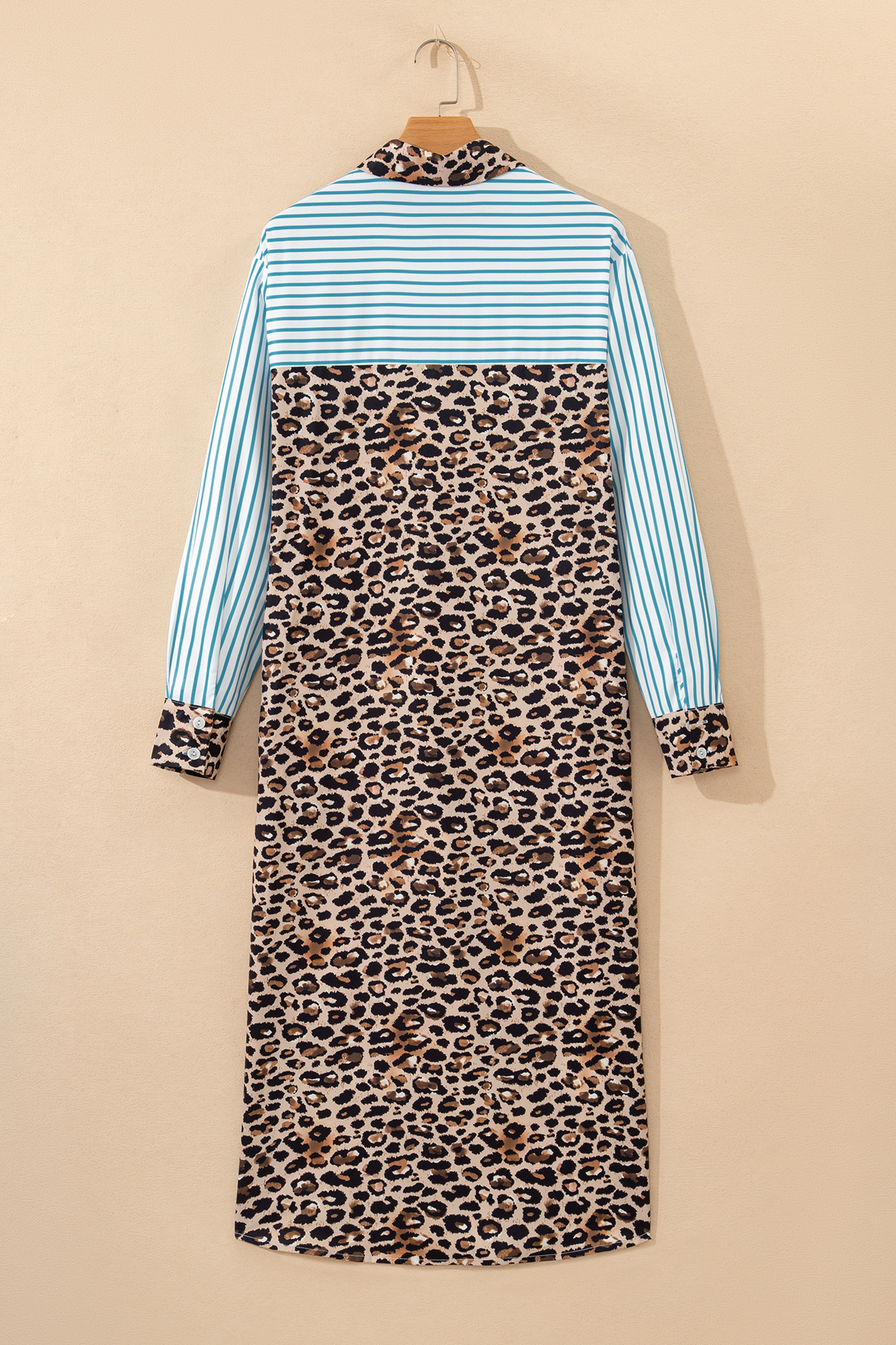- The pinstriped pattern makes this long dress more flattering and slender.