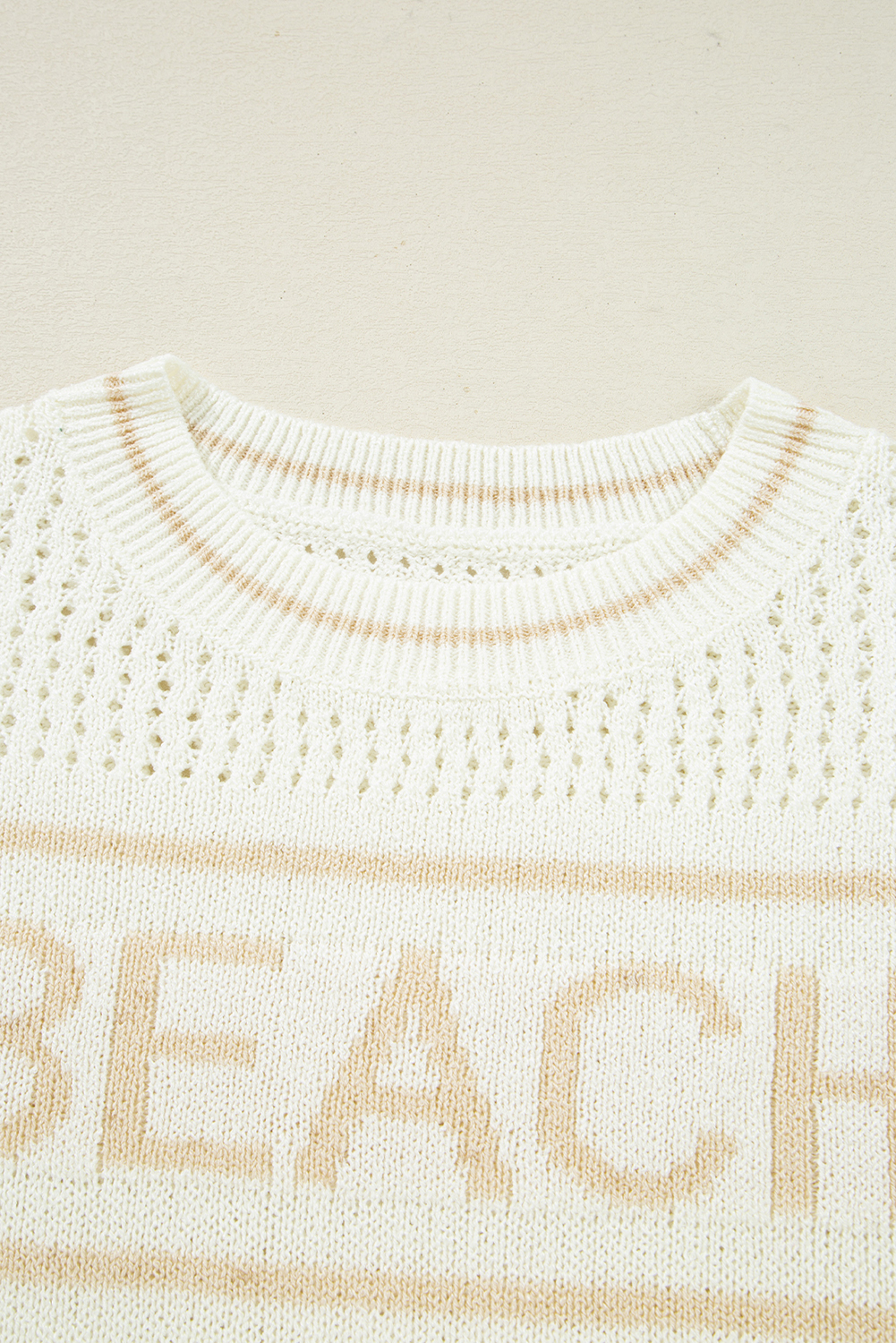 - The BEACH letter knitwear highlights coastal vibes.