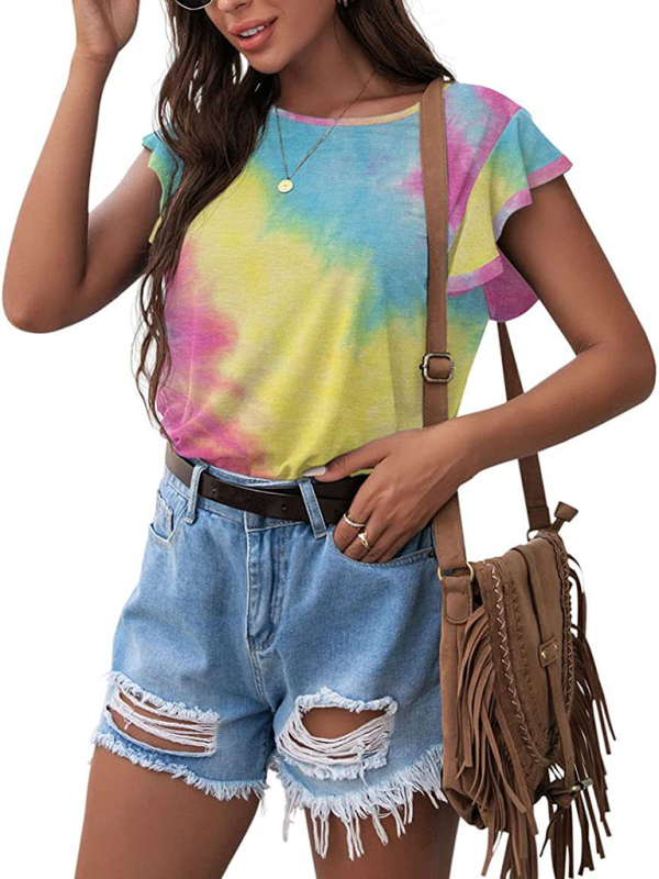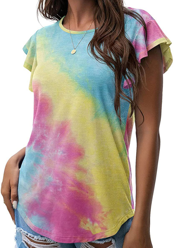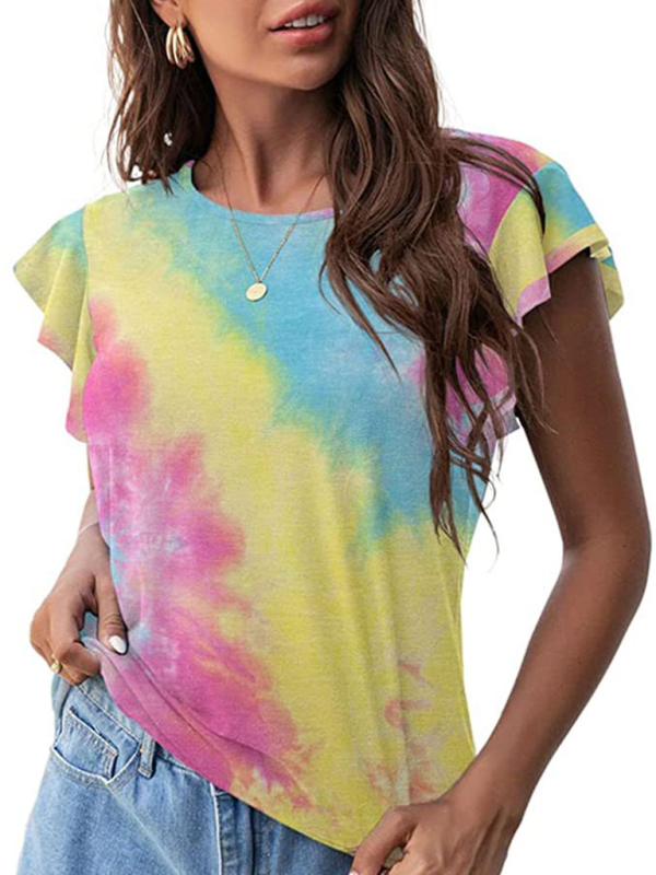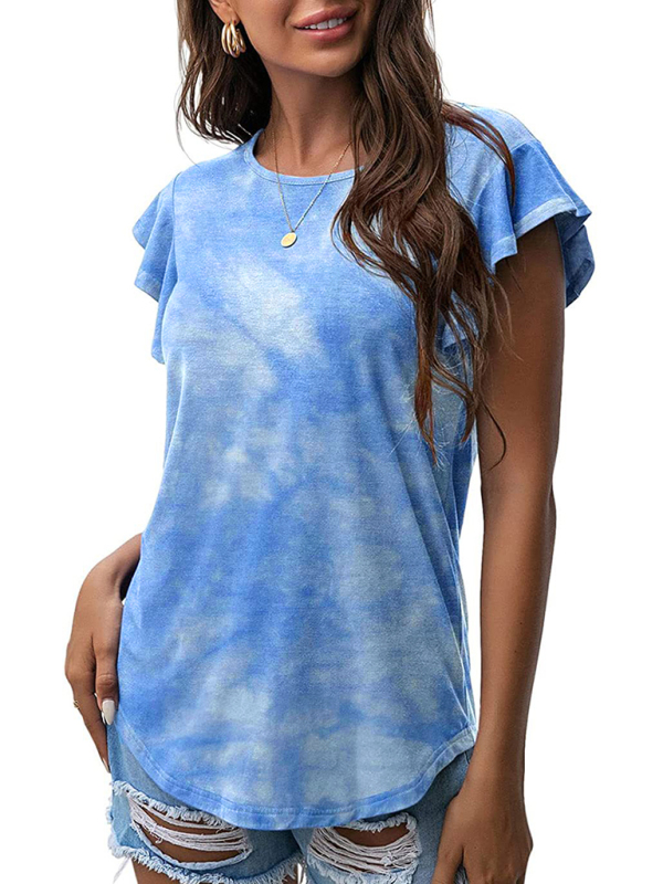 Women’s casual round neck printed lotus leaf short-sleeved T-shirt, fashionable in style, soft and comfortable fabric. It can be worn daily, going out, dating, vacation, etc. Washing method can be machine wash or hand wash. Fabric is wrinkle and pill resistant. The size is measured by hand, and it is normal for there to be an error of 1-3cm.