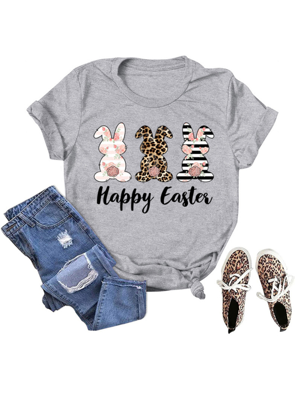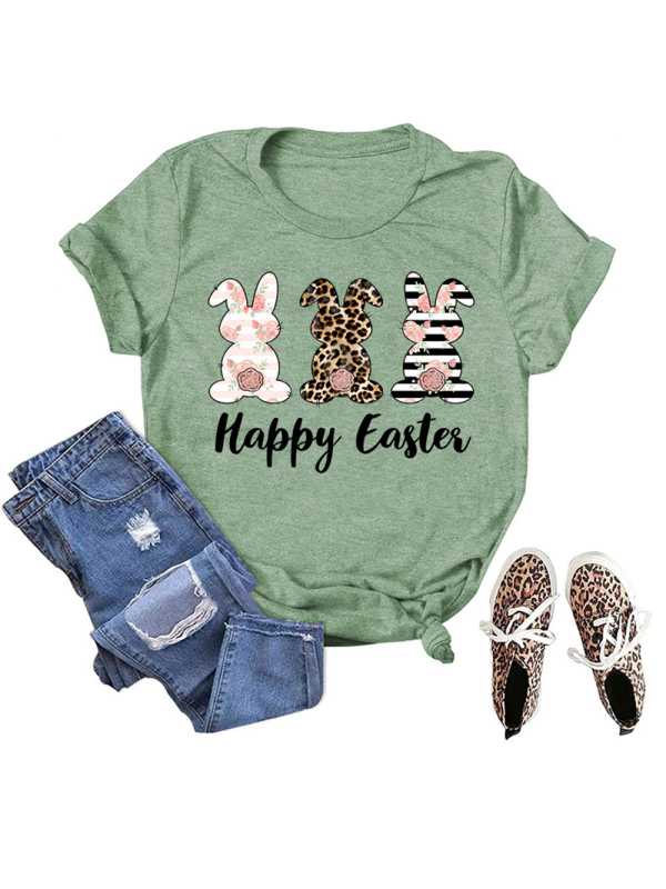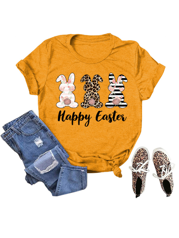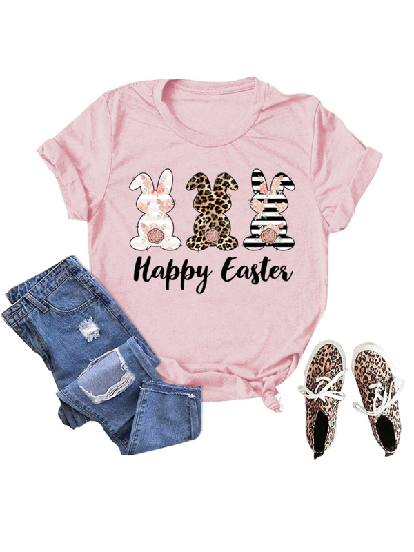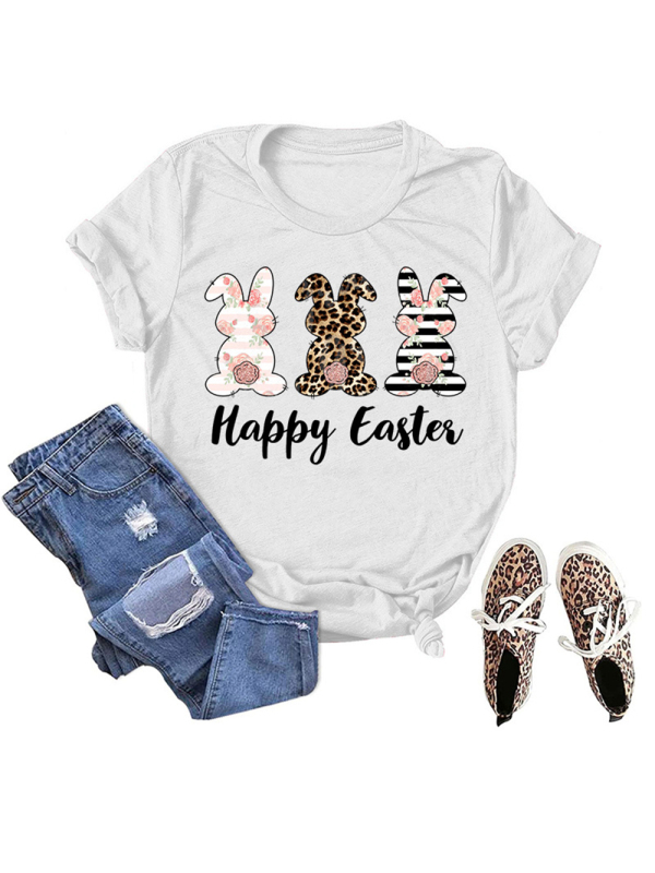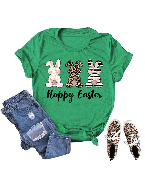 Women’s Easter Bunny HAPPY EASTER short-sleeved T-shirt with lettering print, fashionable style, soft and comfortable fabric. It can be worn daily, going out, dating, vacation, etc. Washing method can be machine wash or hand wash. Fabric is wrinkle and pill resistant. The size is measured by hand, and it is normal for there to be an error of 1-3cm.