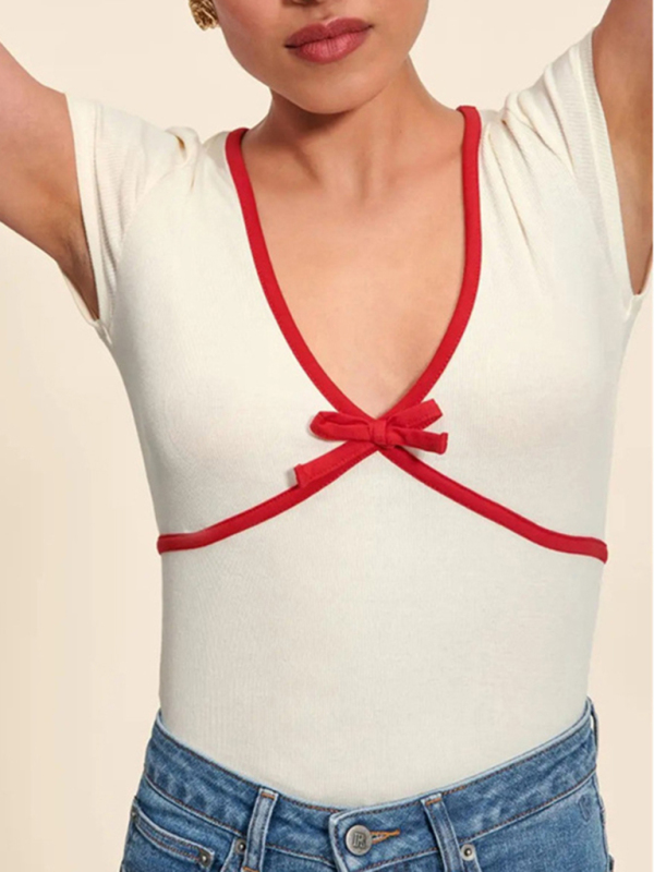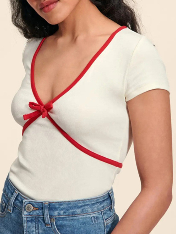 Women’s new solid color deep V contrasting slim fit pure cotton knitted T-shirt. The simple design makes the boring season colorful and interesting. When purchasing, it is recommended to pay attention to the appropriate size to ensure comfort and fit. Please read each element in the size guide carefully before choosing a size. Sizes are measured manually, and an error of 1-3cm is normal. In addition, it is important to understand the material and care requirements of the clothing in order to properly care for and maintain the clothing and extend its service life.